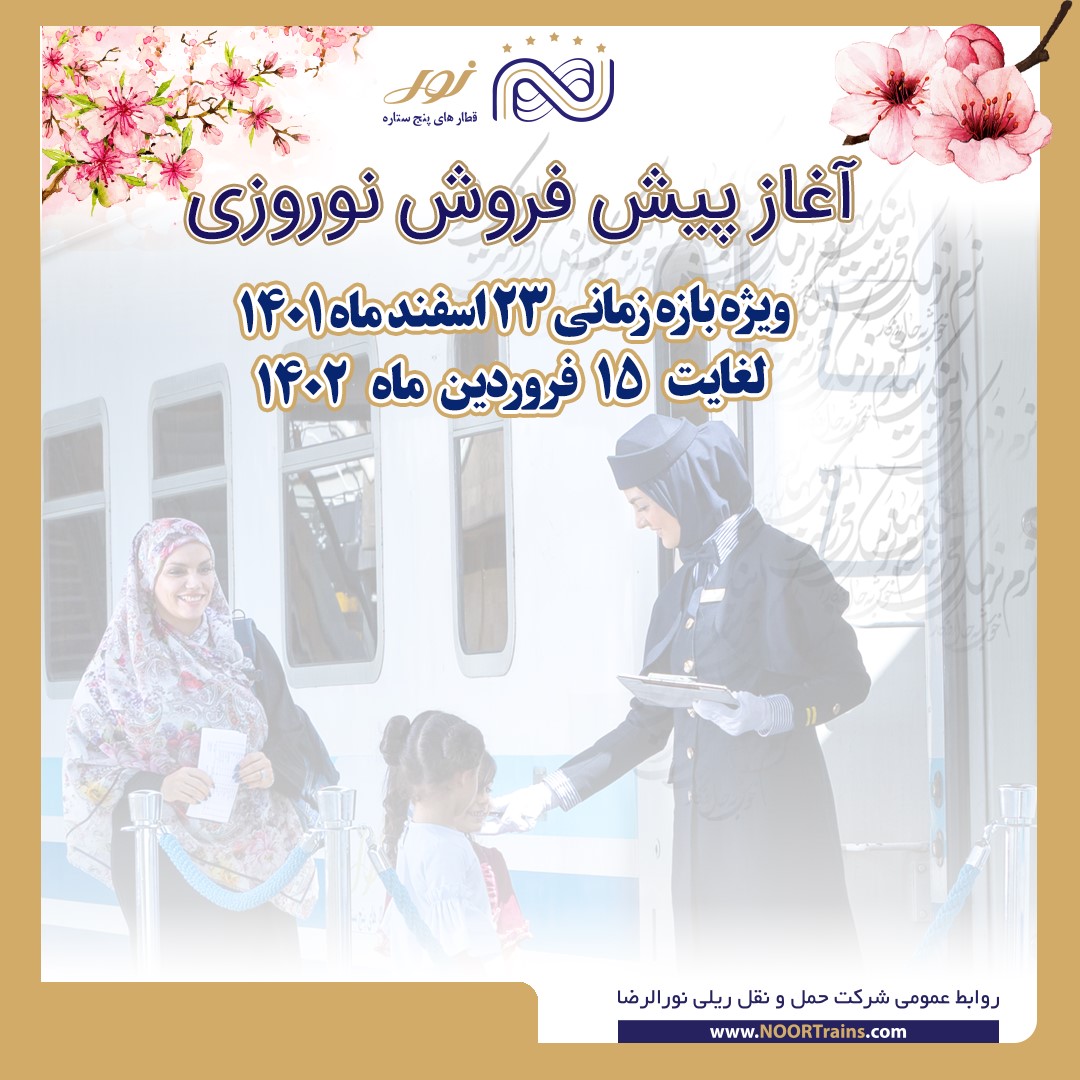 پیش فروش نوروزی بلیت قطارهای پنج ستاره نور آغاز می گردد.