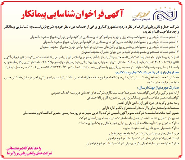 روابط عمومی شرکت حمل و نقل ریلی نورالرضا