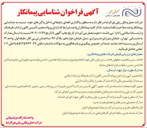 روابط عمومی شرکت حمل و نقل ریلی نورالرضا