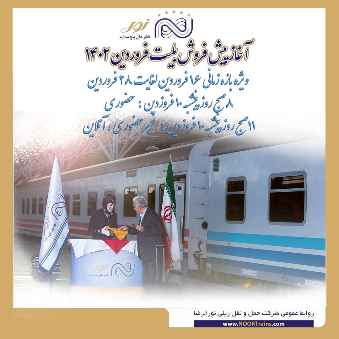 پیش فروش فروردین ماه ۱۴۰۲ بلیت قطارهای پنج ستاره نور آغاز می گردد.