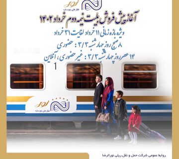 آغاز پیش فروش بلیت نیمه دوم خرداد ۱۴۰۲روابط عمومی شرکت حمل و نقل ریلی نورالرضاخرداد ۲, ۱۴۰۲پیش فروش نیمه دوم خرداد ۱۴۰۲ بلیت قطارهای پنج ستاره نور آغاز می گردد. به گزارش روابط عمومی شرکت حمل ... ادامه مطلب