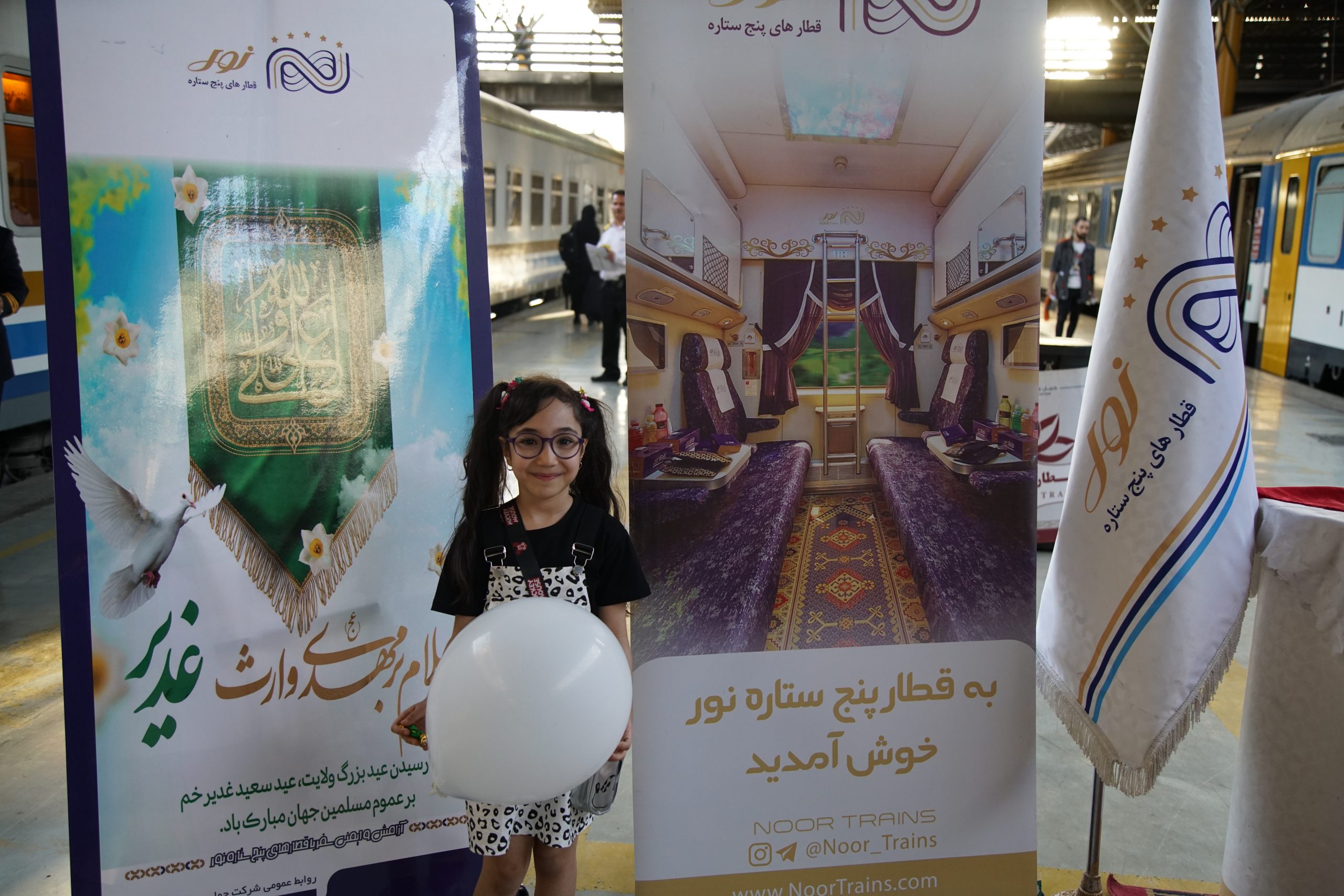 2- برگزاری مراسم جشن اعیاد سعید قربان و عید غدیر خم پذیرایی شیرینی و شکلات و بادکنک آرائی و اهداء جوایز فرهنگی (کتب داستانی قرآنی خردسالان ) در هنگام بدرقه مسافرین محترم قطارهای پنج ستاره نور در ایستگاه راه آهن ج.ا.ا تهران با حضور مدیران شرکت
