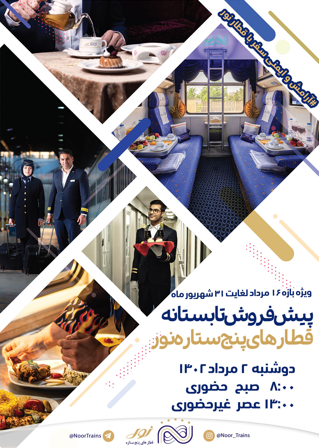 پیش فروش تابستان ۱۴۰۲ بلیت قطارهای پنج ستاره نور آغاز می گردد.
