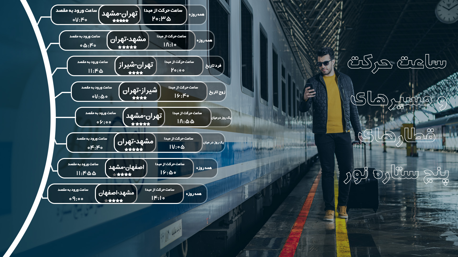 زمان حرکت و مسیرهای قطارهای پنج ستاره نور