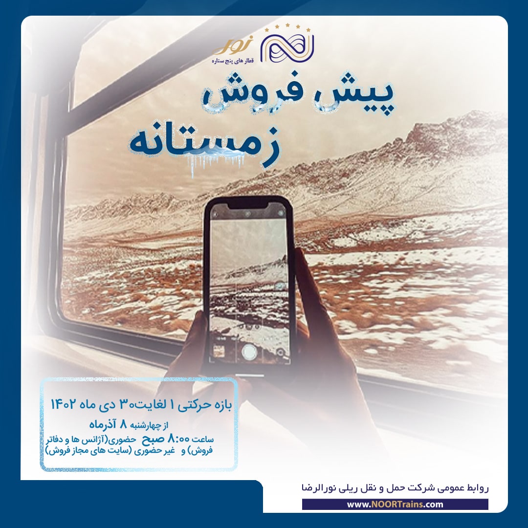 پیش فروش زمستان ۱۴۰۲ بلیت قطارهای پنج ستاره نور آغاز می گردد.