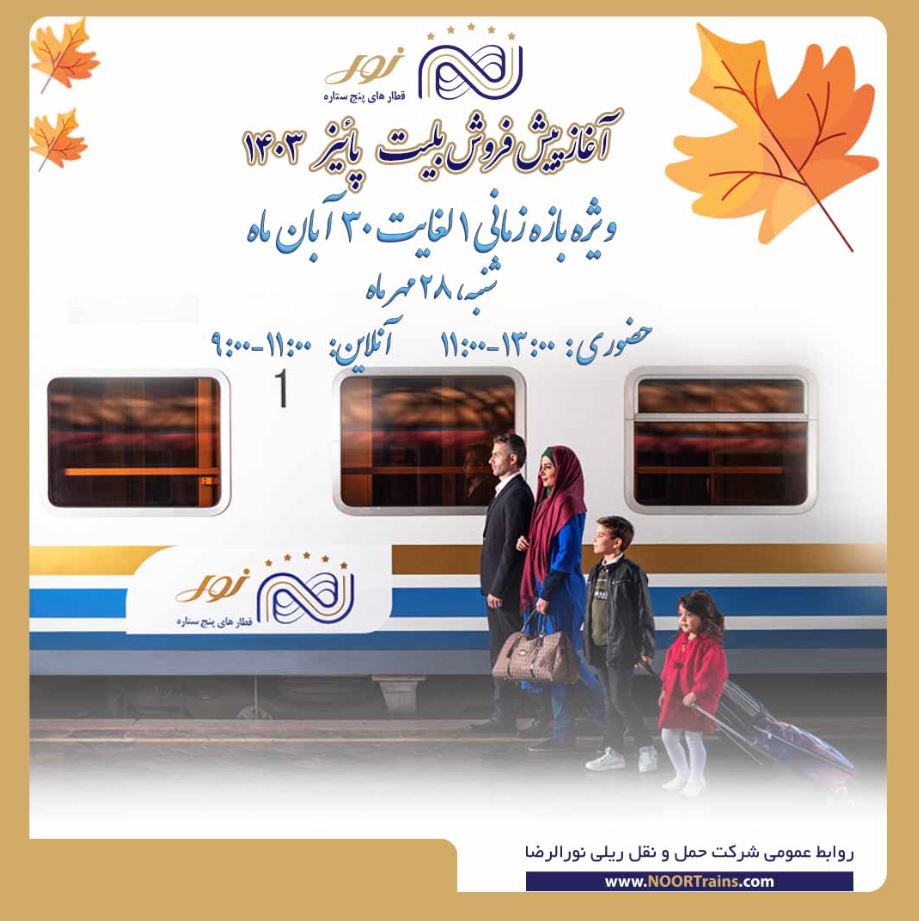 پیش فروش اول تا ۳۰ آبان ماه بلیت قطارهای پنج ستاره نور آغاز می گردد.
