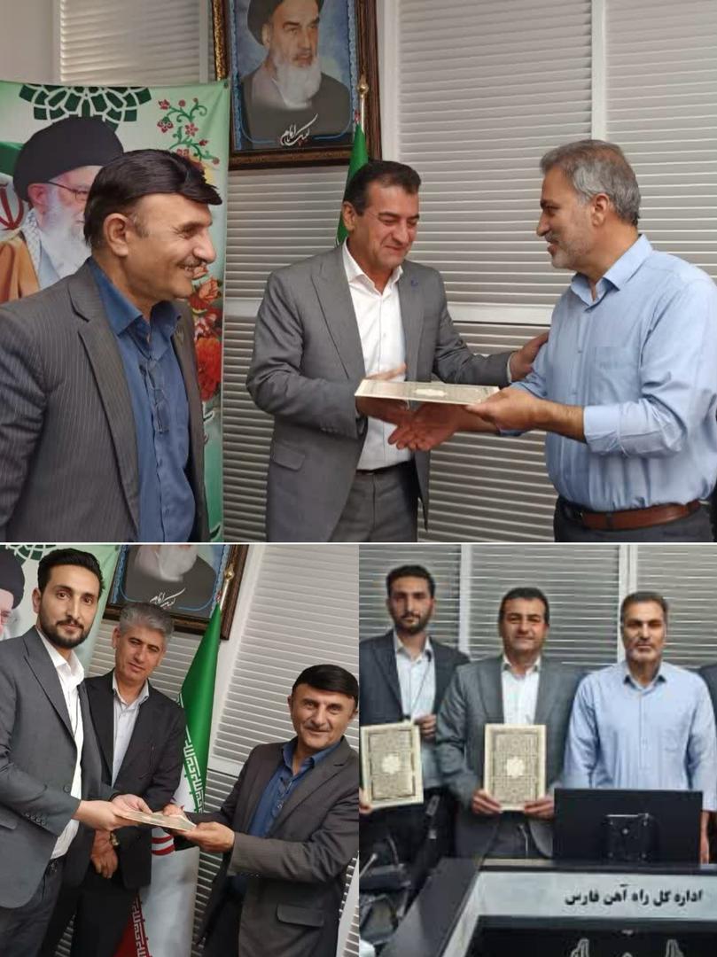 گفتنی است به پاس همکاری‌های ارزشمند و همراهی صمیمانه نمایندگی شرکت نورالرضا در شیراز با گروه مسافری و روابط عمومی راه‌آهن ج.ا.ا فارس در مناسبت‌های مختلف، با اهدای لوح تقدیر تجلیل شد.