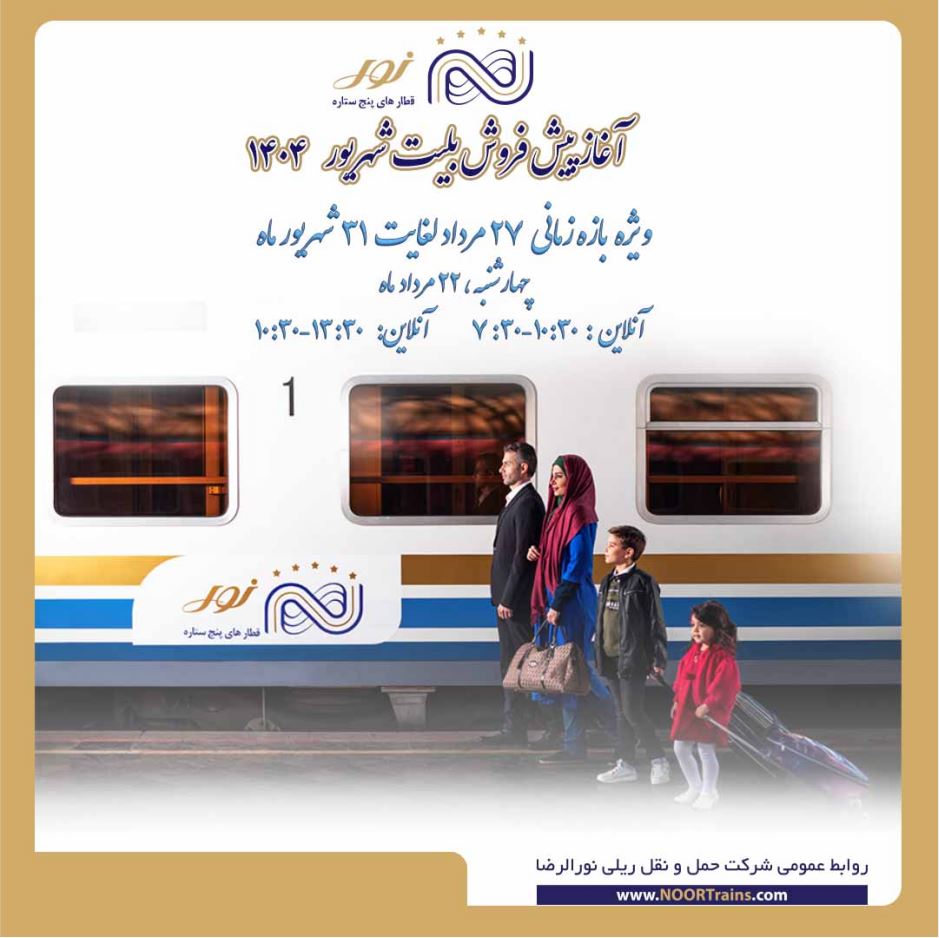 پیش‌فروش بلیت قطارهای پنج ستاره نور شهریور ماه ۱۴۰۴ آغاز شد