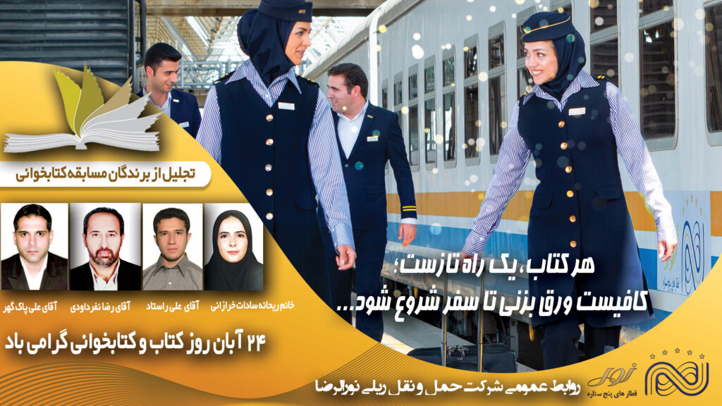 به گزارش روابط عمومی شرکت حمل و نقل ریلی نورالرضا، به مناسبت ۲۴ آبان روز کتاب و کتابخوانی، مراسم تجلیل از برندگان مسابقه کتابخوانی شرکت حمل ونقل ریلی نورالرضا در فضایی صمیمی، فرهنگی و همراه با حضور گرم همکاران برگزار شد.