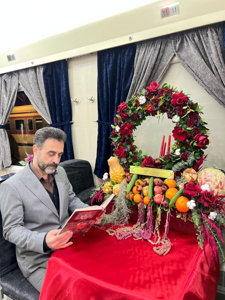 در این مراسم، فضای قطارپنج ستاره نور با آذین بندی یلدایی، گلآرایی و چیدمان سفره سنتی یلدا حال وهوایی متفاوت به خود گرفت و پذیرایی ویژه شب یلدا شامل شکلات و کیک یلدایی، لحظاتی شیرین و خاطرهانگیز را برای مسافران رقم زد.