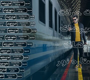 ساعت جدید حرکت قطارهای پنج ستاره نورروابط عمومی شرکت حمل و نقل ریلی نورالرضامرداد ۳۱, ۱۴۰۴ساعت جدید حرکت قطارهای پنج ستاره نور در شهریور ماه ۱۴۰۴ اعلام شد. به گزارش روابط عمومی شرکت حملونقل ریلی ... ادامه مطلب